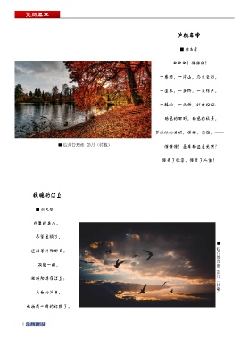 覽閱篇章 滬杭車中 ■ 徐志摩 匆匆匆!催催催! 一卷煙,一片山,幾點云影, 一道水,一條橋,一支櫓聲, 一林松,一叢竹,紅葉紛紛: 艷色的田野,艷色的秋景, 夢境似的分明,模糊,消隱,—— ■ 綜合管理部 彭丹(轉載) 催催催!是車輪還是光陰? 催老了秋容,催老了人生! 秋晚的江上 ■ 劉大白 歸巢的鳥兒, 盡管是裷了, ■ 綜 合 還馱著斜陽回去。 管 理 部 雙翅一翻, 彭 丹 ( 把斜陽掉在江上; 轉 載 ) 頭白的蘆葦, 也妝成一瞬的紅顏了。 15